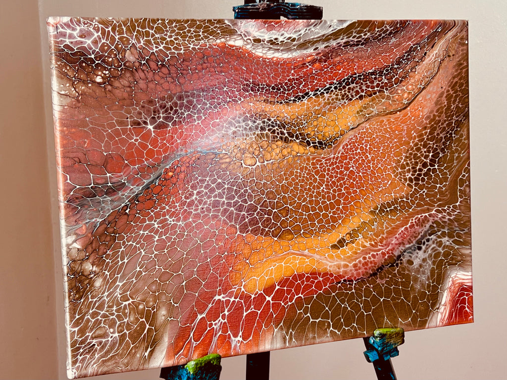 Experience the depth, movement, and organic beauty of this original abstract fluid art piece, created using the acrylic swipe technique to produce striking lacing effects and dynamic color transitions. This artwork is handcrafted on an 11 x 14 inch (28 x 36 cm) stretched canvas using premium acrylic paints and professional pouring mediums, ensuring long-lasting vibrancy and durability.