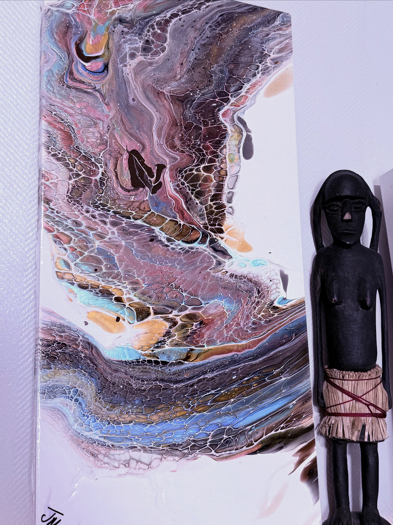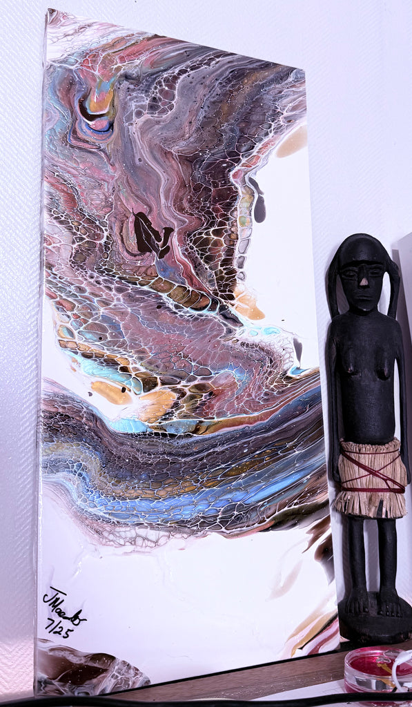 Painted on durable cardboard, this piece combines modern fluid art with a natural, organic rhythm. The elongated format enhances its graceful sense of movement, making it ideal for narrow walls, shelves, or gallery-style displays. Each bloom reveals intricate detail and luminous depth that shift beautifully with changing light.